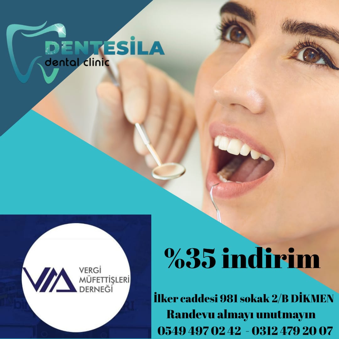 Vergi Müfettişleri Derneği üyelerine ve birinci derece yakınlarının (anne,baba,kardeş,eş,ve çocukları) faydalanabilmeleri için Dentesila Diş Kliniği ile yapılan anlaşmaya göre Türk Diş Hekimleri Birliğinin her yıl yayınladığı Güncel Fiyat Listesi üzerinden %35 indirim imkanı sağlanacaktır.