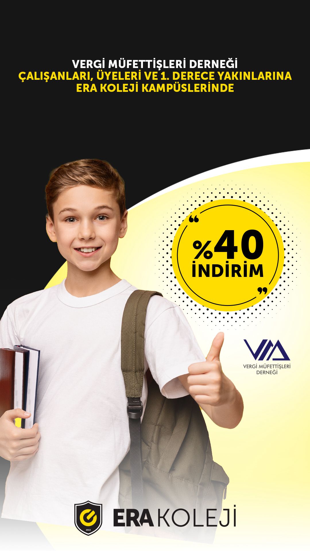 Vergi Müfettişleri Derneği üyelerinin çocuklarının eğitimi için Era Koleji ile 2026-2027 eğitim-öğretim yılı için indirim anlaşması yapılmıştır.