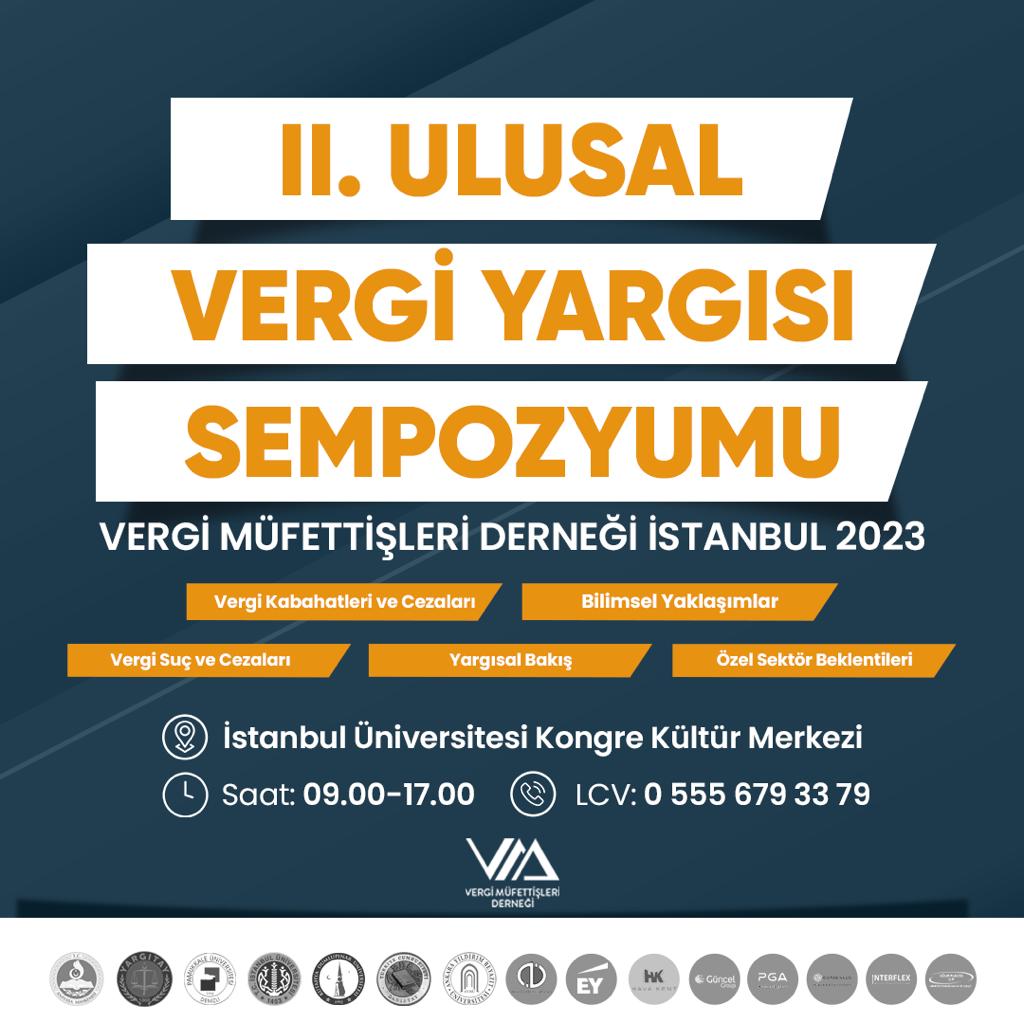 II. Ulusal Vergi Yargısı Sempozyumu 4 Mayıs 2023 tarihinde Vergi Müfettişleri Derneği ev sahipliği ve İstanbul Üniversitesi paydaşlığı ile düzenlenecektir. Programa katılımızdan onur duyacağımızı belirtir, saygılar sunarız.